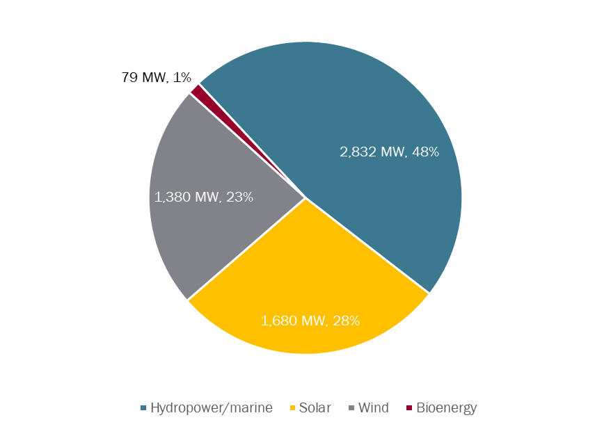 Historically, renewable energy sources have provided over 95% of the country's electricity. In 2020, hydropower accounted for 85% of the country's electricity capacity, while wind and bioenergy accounted for 7% and 6%, respectively. However, according to the International Trade Administration (ITA), the country exploits less than 5% of its exploitable hydropower reserve, less than 1% of its wind resources, and less than 50% of its bioenergy capacity.